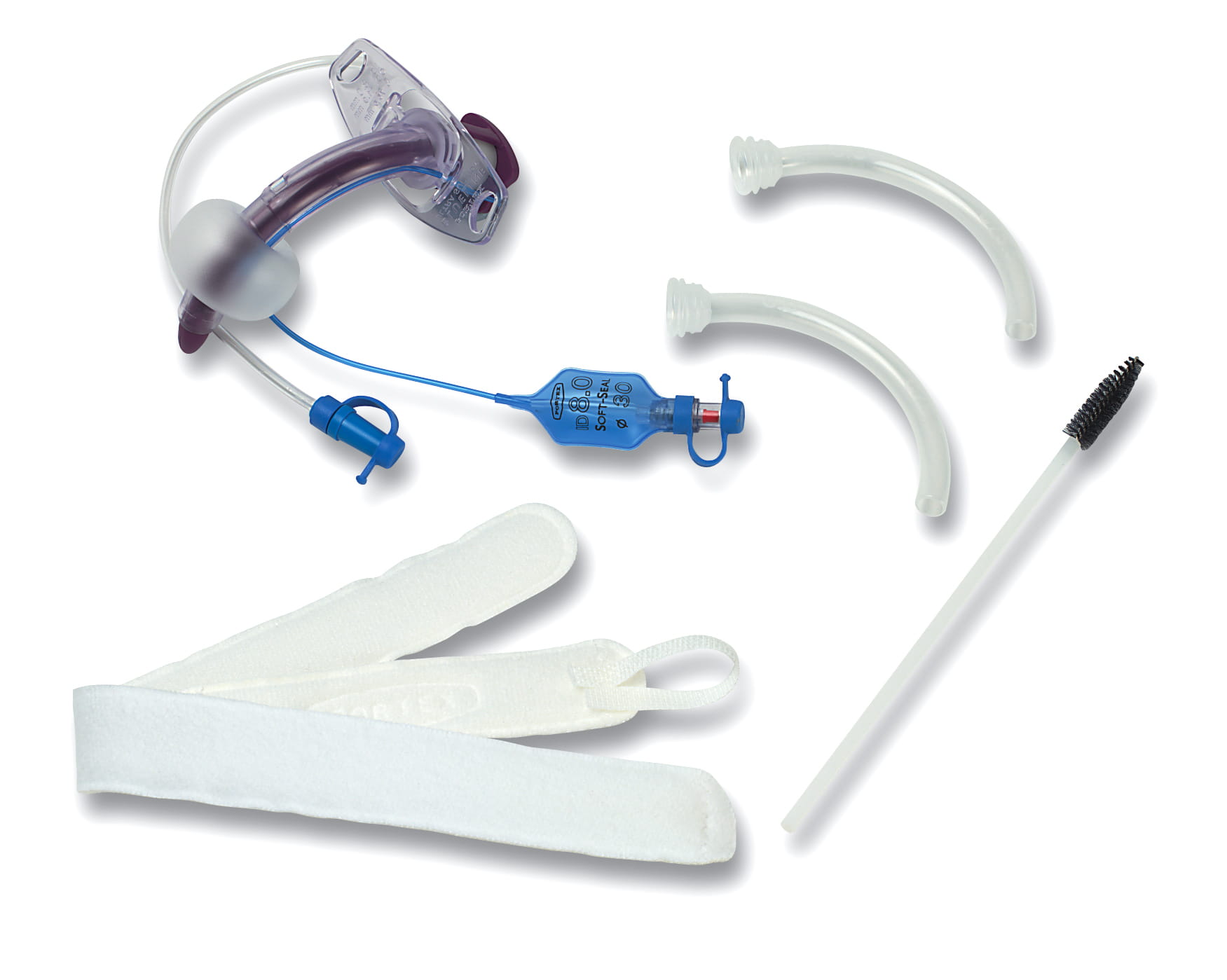 Rurka tracheostomijna z mankietem Soft-Seal i odsysaniem znad mankietu, z dwoma wymiennymi kaniulami, szczoteczką do czyszczenia kaniul i opaską do rurki