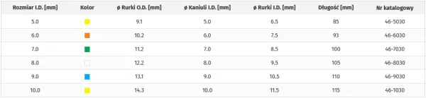 - Rozmiar kaniuli (I.D.): 7,0 mm